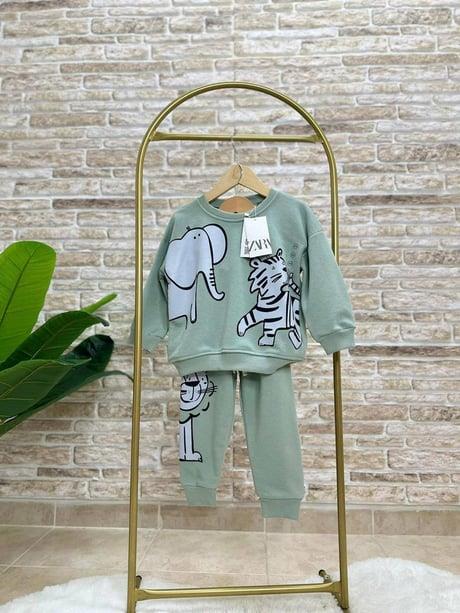 Karakter Baskılı Unısex Çocuk Pamuklu İkili Takım Yeşil (2-8 Yaş)